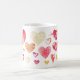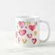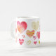 Uma caneca de amor coberta de corações pode ser dada como um presente de Dia de os namorados.