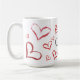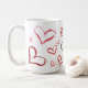 Ponha seu café/chá matinal nesta caneca com corações em vermelho e cinza. Faria um belo presente de Namorados para um professor ou alguém especial. Encha-o com doces, colheres cobertas de chocolate, colas de mel, embrulho com celofane e amarre com uma fita bonito para torná-lo mais especial. Adicione o meu balão de palito de coordenação para torná-lo ainda mais divertido.