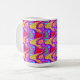 Lâmpadas em um vibrante design multicor com corações vermelhos.
