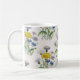 Ilustração botânica antiga de flores-do-mar em azul, amarelo e branco.