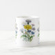 Ilustração botânica antiga de flores-do-mar em azul, amarelo e branco.