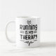Correr é minha caneca de terapia. Maratonista engraçado cita a saúde mental feminina. Faça um jogador viciado, piada um belo presente estético de pulsação.