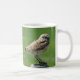 Caneca com legenda da Coruja-das-tocas. Quando eu era criança, cerca de quarenta anos atrás, essas adoráveis pequenas corujas eram encontradas em todo o prado do sudeste de Alberta, Canadá. Elas não cavam túneis, na verdade, elas ocupam buracos abandonados de texugos. Infelizmente, a contaminação por DDT nos anos setenta e oitenta e a perda de áreas de nidificação para a agricultura tornaram-nas uma visão rara.