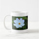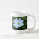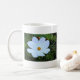 Uma foto de uma flor branca atraente do Cosmos em uma cama sombria.