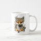 Um bonito design de aquarela com uma raposa fofa rodeada de flores coloridas.
