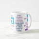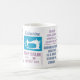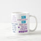 Elogios e citações em uma brilhante e moderna design tipográfica. Esta caneca de café daria um presente fabuloso para os colchetes. As citações incluem "Pouco tecido, semear pouco tempo" e "Quando a vida te dá restos, faz uma colcha". Adicione seu próprio nome para personalizar para um presente exclusivo.