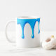 Caneca De Café Coulures de peinture bleu sur fond blanc.