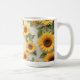 The artwork combines botanical illustration, floral arrangement, and nature-inspired design elements. The soft neutral background makes the vibrant yellow sunflower petals stand out beautifully, creating a cheerful summer and autumn vibe. This design is ideal for rustic farmhouse decor, country style products, botanical art lovers, and floral pattern enthusiasts.
