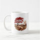 Contemporary Quilling Design featuring Countryside in the Autumn with trees and flowers in reds, beiges and browns with grey and sandy coloured rolling hills in the background coffee mug.