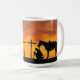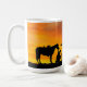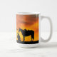 Cowboy em oração com seu cavalo e uma caneca de café solarista espantosa