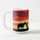 Cowboy em oração com seu cavalo e uma caneca de café solarista espantosa