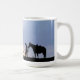 Cowboy em oração com seu cavalo e uma caneca de café arco-íris espantosa