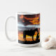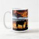 Cowboy em oração com seu cavalo e uma caneca de café solarista espantosa