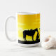 Cowboy em oração com seu cavalo e uma caneca de café solarista espantosa