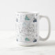 Um padrão de aquarela sem costura com pequenas casas confortáveis aninhadas nas passagens de neve entre ramos de árvore negras e folhas é o design perfeito para um Natal em casa. Disponível em duas paletas coloridas de ventre, esta versão apresenta tons de lacre, azul de aço e bege macio. Fornecemos o texto opcional 'Saudações da Época' e você pode personalizar este café de Natal festivo ou uma caneca de cacau quente com seu nome e data. Procure ID985 para ver todos os produtos coordenadores com este adorável padrão de Natal.