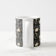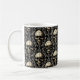 Crânios beges vestidos e antigos em meio a uma cor damasco bege e cinza de prata cria uma dramática caneca de café gótica. Perfeito para quem abraça o lado mais negro da vida.