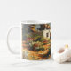 Criada no Ranch~Uma caneca de estilo vintage adornada com imagens icônicas de rancho de adobe, destacando elementos rústicos e céu aberto largo, em tons de terra. Excelente para qualquer ocasião.