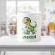 Uma caneca adorável com um design de dinossauro fofo, personalizável com o seu nome. Perfeito para crianças que adoram dinos e gostam de suas bebidas favoritas!
