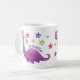 Um dinossauro roxo junto com seu próprio nome. Esta caneca de dino fofa é perfeita para crianças (de todas as idades!).