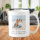 Crie sua foto personalizada e cite a caneca de café. Apresenta uma tipografia personalizável minimalista de máquina de escrever e uma das suas fotografias favoritas.