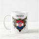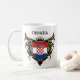 Design legal da crista com cores croatas da bandeira nacional. Substitua o texto "Croatia" com seu próprio slogan para criar um presente croata personalizado original do orgulho. Ideias personalizadas do presente: #1 pai croata, mamã, vovô, avó, tio, tia, esposa, marido, [o outro membro da família]; Orgulhoso ser croata, rochas de Croatia.