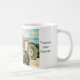 Uma caneca de café branca com uma imagem de tratores na praia em East Runton, Nr Cromer, Norfolk, Reino Unido; de uma pintura pastel macia de Judy Adamson. Cartões de saudação, impressões e posters também disponíveis