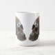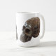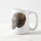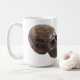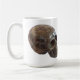 Uma caneca de café com a imagem de um crânio de cristal de madeira petrificado esculpido