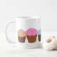 Seis cupcakes deliciosos com glacé colorido e aspersores.