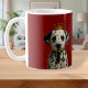 Cãozinho na caneca Dourada Crown Cute de Ricaso. Um adorável cachorrinho Dalmático em fundo vermelho. Ideal para amantes de animais/cães.