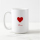 Custom modern minimalist red heart "Love" coffee cup - with your personalized chic design. Keep it simple or make your own unique changes to the heart or background color, add typography with names, dates, a quote or a special message.