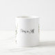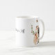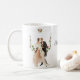 This custom name wedding coffee mug is shown with sample names and a bride and groom art print.