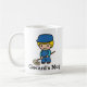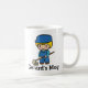 Cute boy custodian / zelador em macacão azul com esfregão. Para o pessoal de custódia. Personalize o texto.