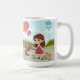This adorable illustration features a happy little girl and her cute dog standing on a flower meadow with colorful balloons floating in the sky. The playful and cheerful design celebrates friendship, joy, and childhood innocence.