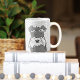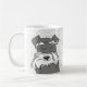 Um design adorável de um Schnauzer sobre um fundo de pegadas. Uma caneca de café perfeita para qualquer amante de Schnauzer.