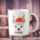 Caneca De Café Cute Reindeer with Santa Hat Custom Name