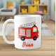 This adorable mug is the perfect gift for any child who loves emergency vehicles or anyone who works as a first responder! The classic white ceramic mug features a cute, hand-painted style watercolor fire truck in bright red, complete with a ladder and flashing light. The mug is fully personalized with a custom name (e.g., Brian) in a fun, handwritten-style font below the graphic.
