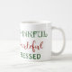 A maneira perfeita de comemorar os presentes da vida quotidiana! Esta caneca de café bonita do design da aguarela caracteriza uma abóbora bonita, umas folhas, e um design verdes e amarelos do cone do pinho com as palavras Blessed grata grata escrita no lado. Tudo em um fundo branco macio. Esta caneca de café bonita da abóbora da aguarela é o presente perfeito para a mamã, avó, irmã, amigo, professor, ou mesmo para o senhor mesmo!. Coordenadas com os outros artigos na coleção "abençoada" grata grata do estúdio Home gracioso.