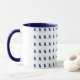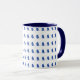 Branco da caneca de café da campainha com guarnição azul