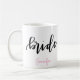 Caneca de café da noiva com rotulação preta e cor-de-rosa da caligrafia. Personalize o nome para personalizar. Rotulação moderna projetada pela alegria por Jess.