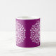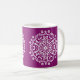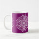 Esta mandala branca senta-se sobre um fundo roxo quente. A cor é luxuosa e criativa. Parte da coleção Mola Mandala.
