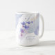 Esta elegante coleção de casamento usa uma impressionante paleta de cores, incluindo pervinca, ameixa e tons azuis suaves, para criar papelaria e suprimentos para festas combinando para o seu dia especial. Florais em aquarela e pinceladas de tinta brilhante fornecem fundos atraentes. A caneca de café, mostrada aqui para uma dama de honra, também pode ser usada para outros membros importantes da festa de casamento. Um modelo é fornecido para adicionar facilmente um nome pessoal e o título da festa de casamento, juntamente com a data do casamento. Procure ID940 para ver todos os produtos deste conjunto de casamento.