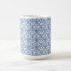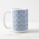 Esta caneca de café cerâmica é mostrada com um adorável design impressão azul damask. Personalize este item ou comprar como está.