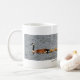 A fotografia na caneca branca tem Momma e gansos de Canadá do pai que reunem seus gosslings no único arquivo.