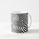 A mug in black and white dazzle camouflage design.
