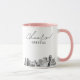 Caneca de café com marcos modernos de Sacramento. O design apresenta um esboço deslumbrante com a capacidade de personalizar com seu nome ou os nomes das suas damas de honra, convidados ou outros. Atualize facilmente o tamanho e a cor da caneca ao seu gosto.