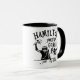 " Hamilton você está indo PAGAR!" Com a roda dentada de John do clockmaker destas palavras jurou para trazer uma extremidade ao pulso de disparo digital desprezível e para restaurar o mundo a sua glória anterior! Agora você pode possuir esta caneca de café com trabalhos de arte por Havalah Jones que descreve o capitão Roda dentada que despedaça uma das abominações digitais de Hamilton!