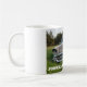 É sempre uma boa estadia por o tempo do café. Esta caneca do clássico ostenta um Bel Air 1957 de Chevrolet que o cemitério de automóveis Junkeez encontrado estacione em um pasto.