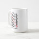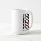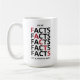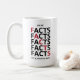 Caneca de café com um design de texto que diz "DÊ-ME FACTOS FACTOS FACTOS FACTOS FACTOS NÃO FACTOS ALTERNATIVOS" em texto vermelho e preto. Adequado para expressar o desejo pela verdade. A cor e a fonte das letras individuais nas linhas de "FACTOS" podem ser alteradas de acordo com a sua preferência. Para fazer isso, siga os passos abaixo:
