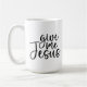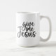 Dê-me uma caneca de café de Jesus escrita em ambos os lados. Esta é uma das minhas canecas favoritas. O tamanho de 15 onças é excelente por não derramar na tentativa de deixar as crianças na escola. E o ditado ajuda-me a ficar de castigo naquela manhã.