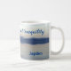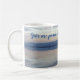 Este belo chá/caneca de café apresenta uma foto atmosférica em tons mudos de azul e cinza. Um leão solitário voa sobre o mar, seu reflexo abaixo. O mar está calmo e colinas podem ser vistas no lado mais distante da baía. É uma cena pacífica e calma. As palavras "Dê-me paz, amor e tranquilidade" são escritas no centro da caneca, e você pode personalizá-la com seu nome para um lado.